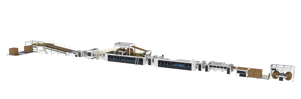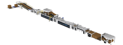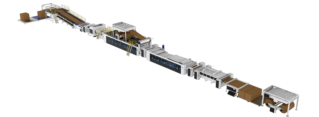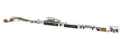 最高生產(chǎn)速度高達(dá)100m/分鐘,整線自動化程度高,原紙損耗低,紙板平整度高;擁有十多項(xiàng)專利。